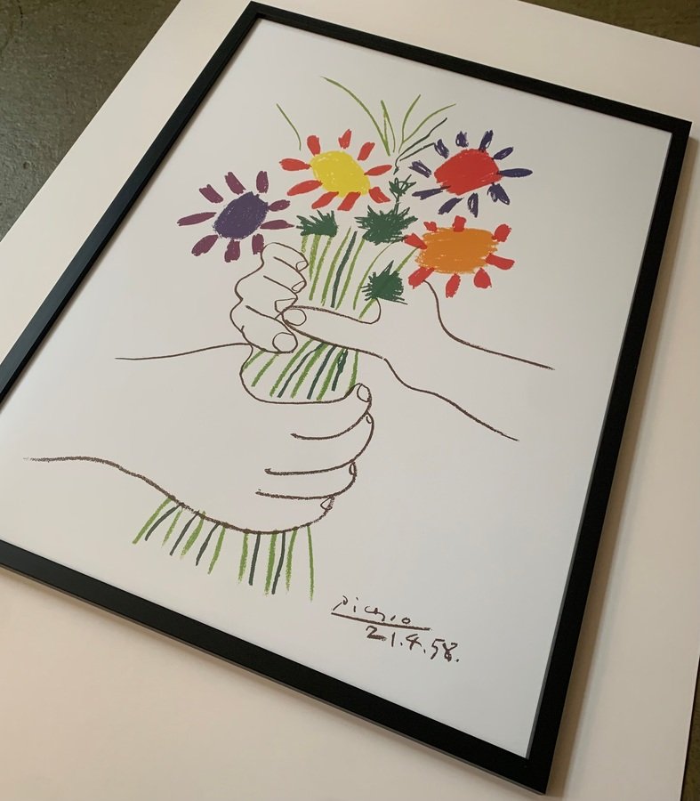 Pablo Picasso Hände mit Blumenstrauss Kunstdruck im Rahmen